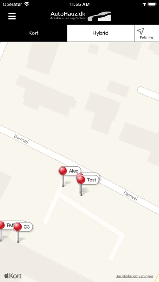 Se alle dine enheder hos HutoHauz.på iPhone når du er på farten i stedet for den normale sporings webside. Her får du overblik over køretøjernes aktuelle positioner.