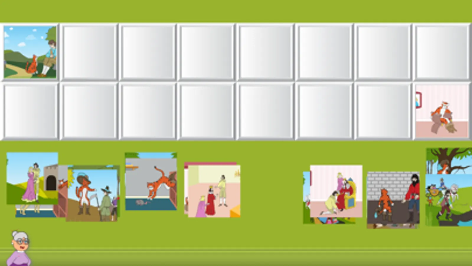 αναπαράγει τις σελίδες του παραμυθιού σε μικρά εικονίδια και το παιδί καλείται να τα τοποθετήσει με τη χρονολογική σειρά που εξελίχτηκε η ιστορία.