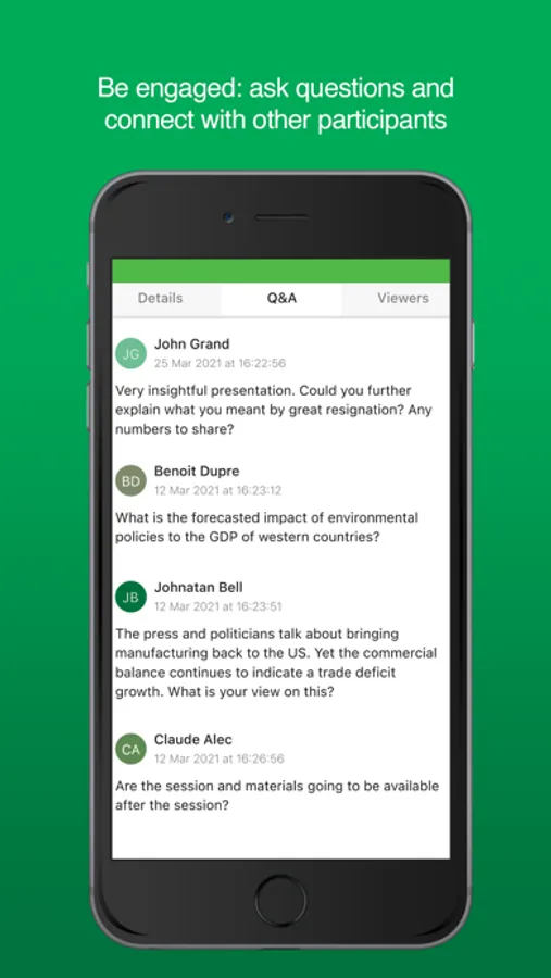• Engaging interactive features: voting and Q&A, ARS audience response systems, networking game, public photo gallery, and more.