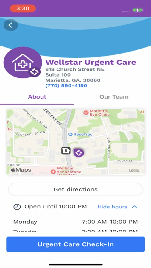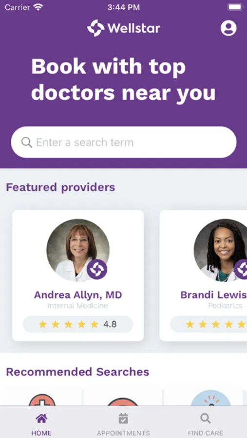 Whether you’re at home or on the go, the Wellstar app makes it easy to stay connected to your healthcare. With just a click, you can find doctors and locations close to you, and book in-person visits — all in one place.