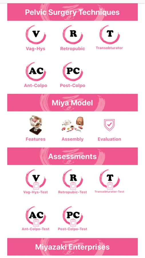 The Miya App is a support tool for the 3D Miya Model, the premier pelvic surgery training model. You will find videos explaining how to use the model with the technical steps needed to perform vaginal hysterectomy, retropubic slings, transobturator slings and anterior colporrhaphy. The Miya App contains Assessment questionnaires for Vaginal Hysterectomy , Midurethral Transobturator and Retropubic Slings and Anterior Colporrhaphy, all of them adapted from ACOG Simulations Consortium. It also contains an evaluation of the 3D Miya Model to help us to improve the quality of the pelvic surgery training.
