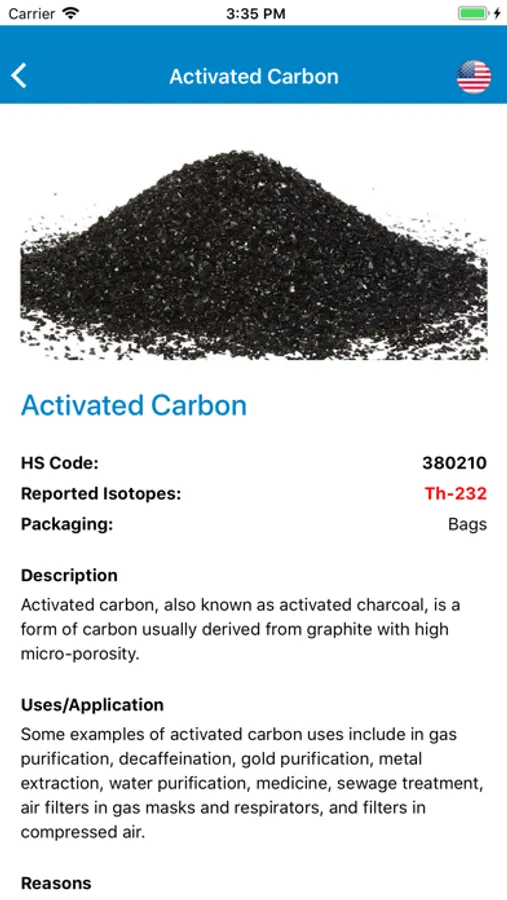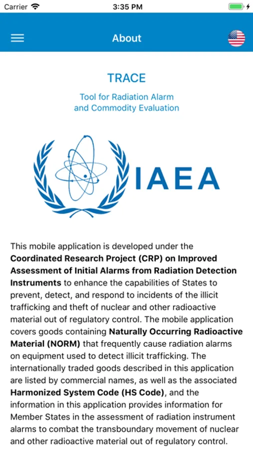 This mobile application is developed under the Coordinated Research Project (CRP) on Improved Assessment of Initial Alarms from Radiation Detection Instruments to enhance the capabilities of States to prevent, detect, and respond to incidents of the illicit trafficking and theft of nuclear and other radioactive material out of regulatory control and it covers the description of good containing Naturally Occurring Radioactive Material (NORM) used in international trades and Harmonized System Code (HS Code) and serves as a guidance for member States in proper assessment of radiation instrument alarms to combat the trans-boundary movement of nuclear and other radioactive material out of regulatory control.
