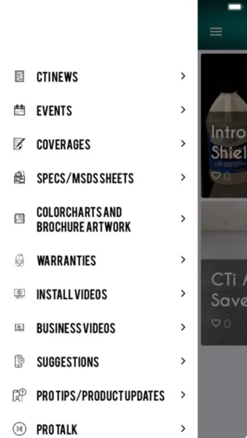 (Coverages, Color charts, Product Info, Videos, FAQs, Upcoming Events, News)