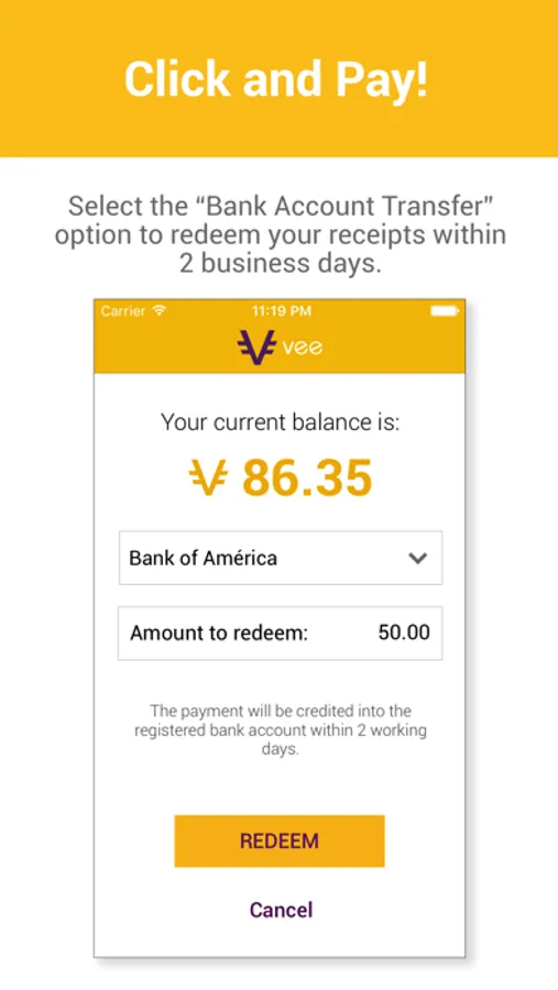 To complete a transaction with the Vee takes only a few seconds and you will receive the proceeds within two business days.