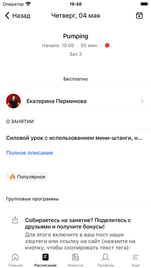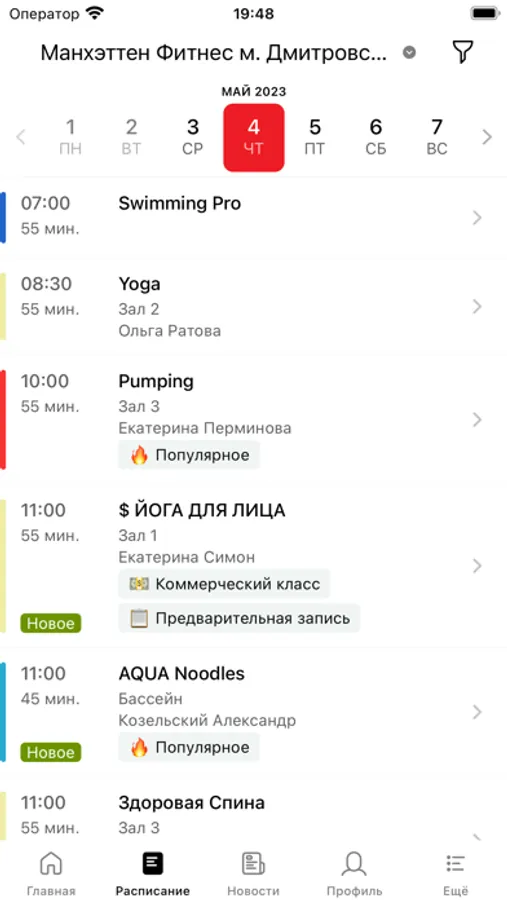 С помощью приложения вы можете следить за новостями, расписанием клубов, оперативно получать информацию об изменениях в расписании и специальных предложениях.