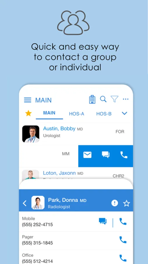 Contact information in mContacts is viewable to all team members. All changes, additions, and deletions are synchronized. So, everyone is literally on the same page. mContacts lets you manage one contacts for your entire team. Create custom user groups and divisions. Filter contacts by department. Do it all on your mobile device.