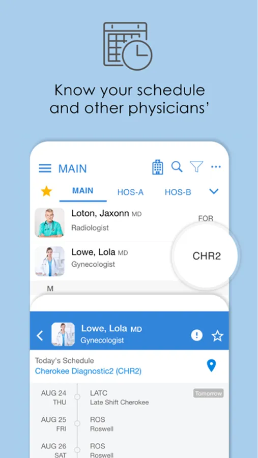 With mContacts, you have access to more than just phone numbers and email addresses. We integrate work schedule and location information. Find out when and where your team members are working. Get access to location specific information such as office phone numbers, addresses, and even driving direction.