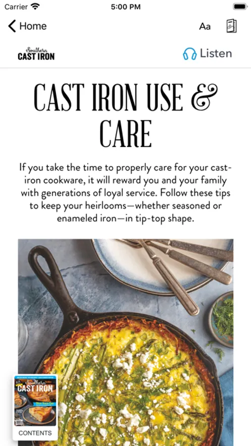 From skillet suppers to classic sides, Dutch oven dinners to mouthwatering pies, Southern Cast Iron delivers the beloved flavors of classic home cooking. Southern Cast Iron highlights unique collectibles, shares tips for caring for your favorite pans, and gives in-depth stories of collectors, chefs, and foundries. Take a look inside the world of cast-iron cooking and history. Beautifully photographed and printed on high-quality paper, it’s a magazine to share with friends and family, and return to each time you pull your favorite skillet out of the cupboard.