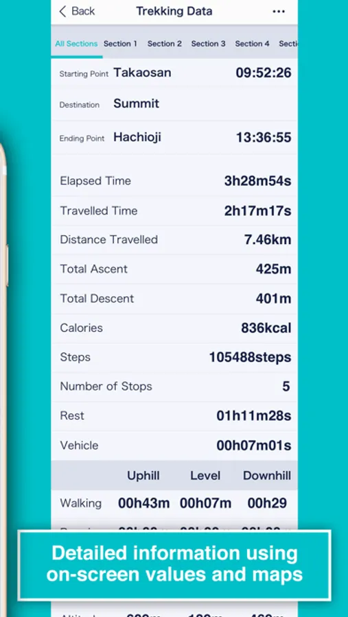 Trekking: Walking, Running, Number of Stops, Rest, Vehicle