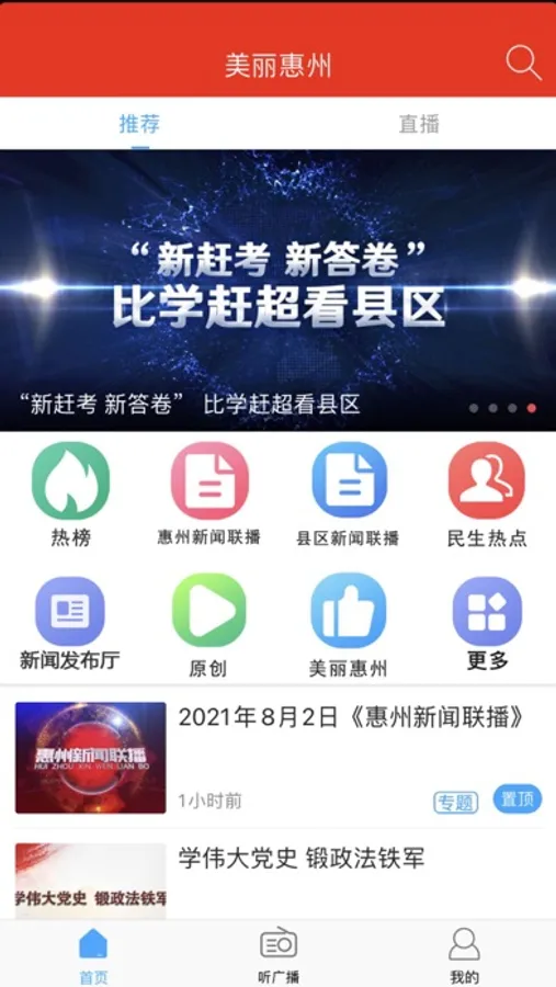2、视听娱乐——为您带来清晰流畅的直播、点播收视收听体验,涵盖惠州广电所有音视频节目资源。
