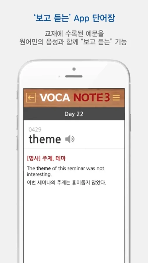ㆍ교재에 수록된 Day별 단어, 단어 뜻, 예문을 원어민의 음성과 함께 “보고 듣는” 기능