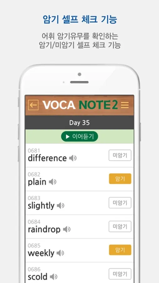 ㆍ어휘 암기유무를 확인하는 암기/미암기 셀프 체크 기능