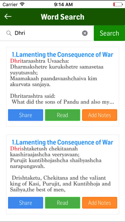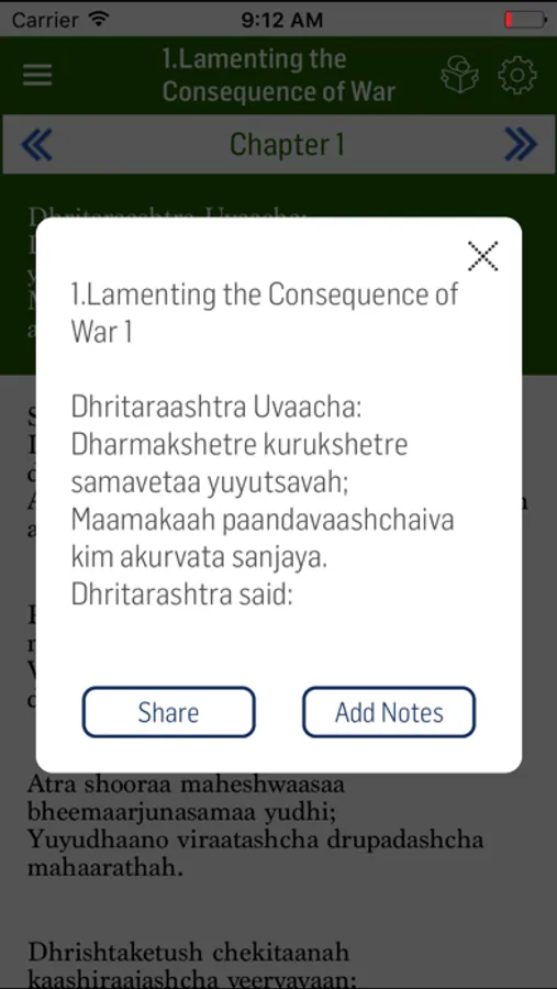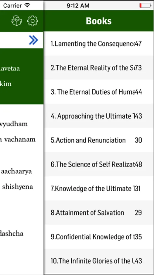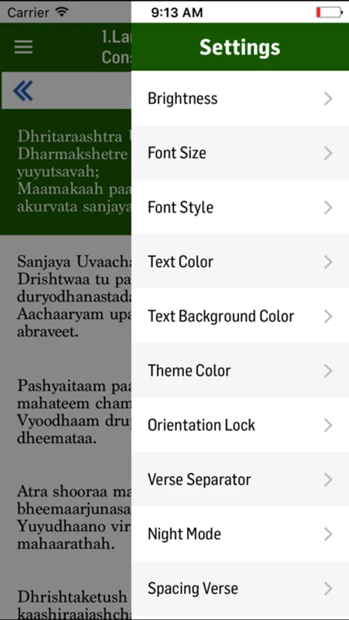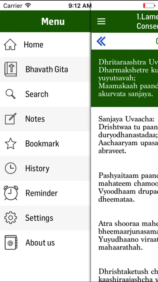 The app has many features to facilitate the reader with utmost comfort and ease to read the contents of Bhagavath Gita. Some of the features are as follows: