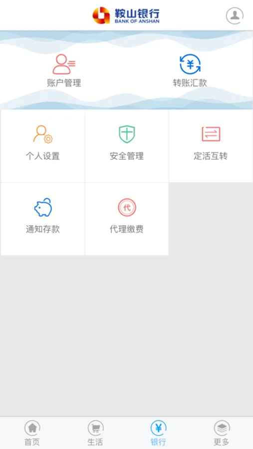 3、功能丰富:鞍山银行手机银行业务为您提供多种便民服务,其中包括:账户管理、转账汇款、基础理财、生活缴费等,是您身边的生活小助手。