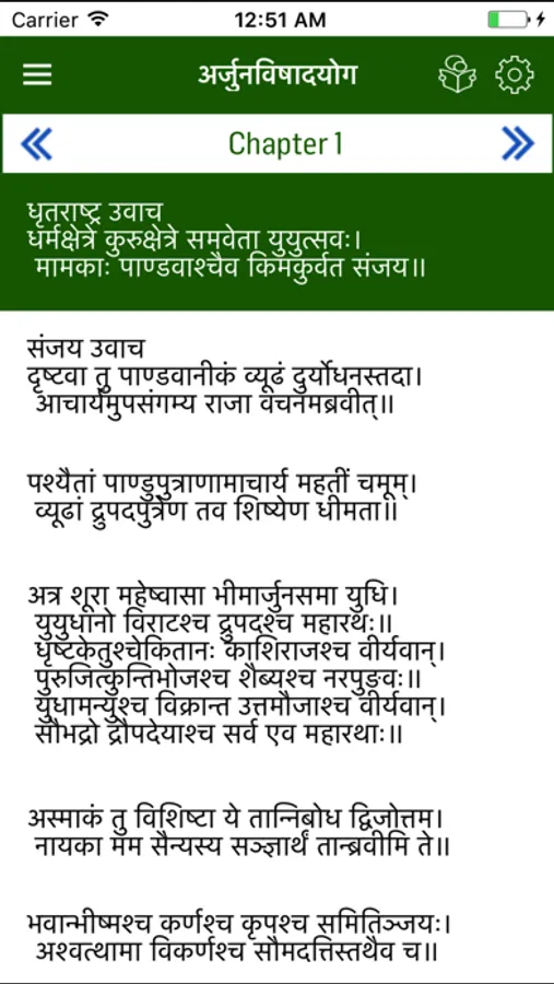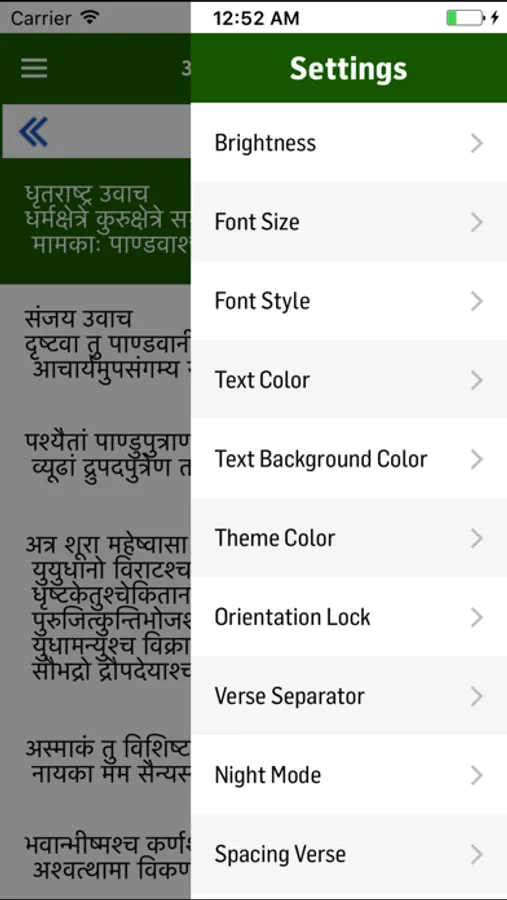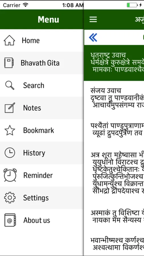 The app has many features to facilitate the reader with utmost comfort and ease to read the contents of Baghavad Gita. Some of the features are as follows: