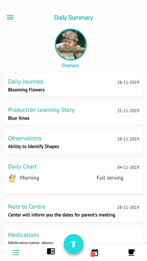 - Viewing children's Daily Charts (meals, nappies, sleep, bottles etc) with past history