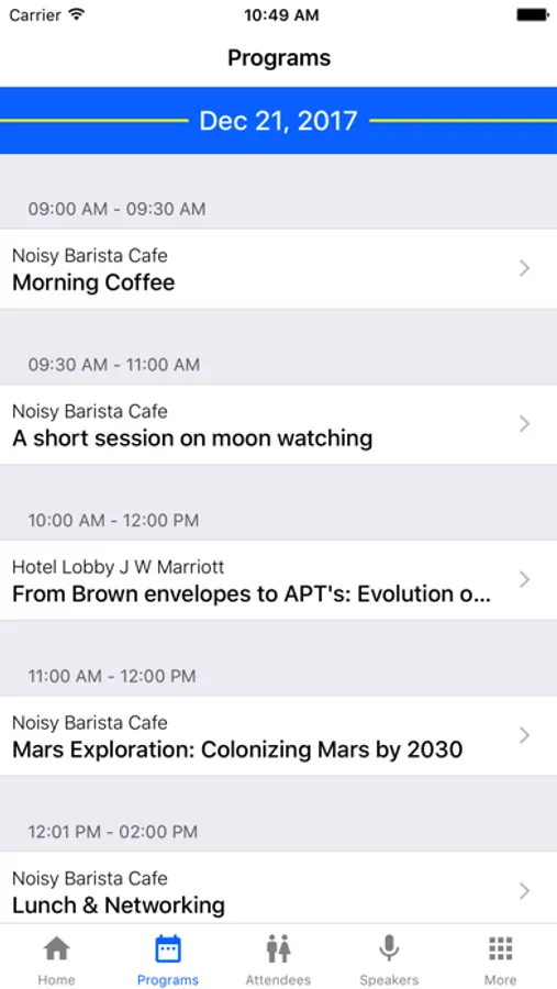 Use the app's in-built QR code scanner to scan attendees' QR code on their badges and save to their list of vCards (leads).