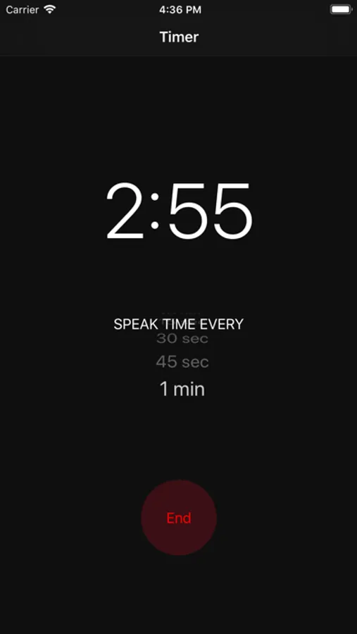 Timer: The app speaks out the remaining time at specified intervals until the timer is finished.