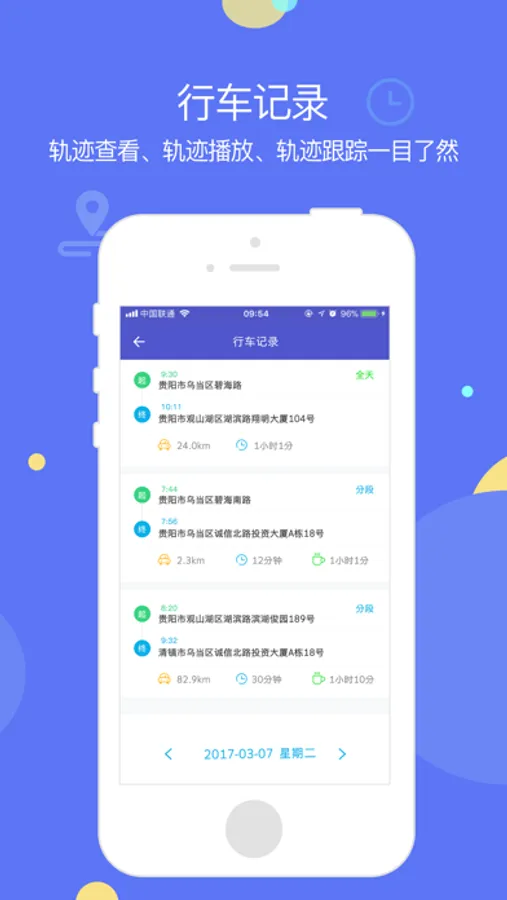 -轨迹分段:可查看车辆的行车记录,根据车辆的点火熄火时间分段显示;