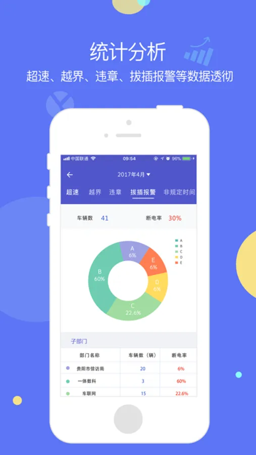 -提供统计报表:可随时查阅子部门月度车辆使用情况及对应车辆的油耗、里程与百公里耗油分析等。