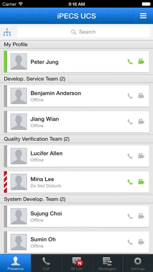iPECS UCS clients employ Wi-Fi or mobile data network to connect with UCS P6 system for business communication services such as presence, call, and voicemail.