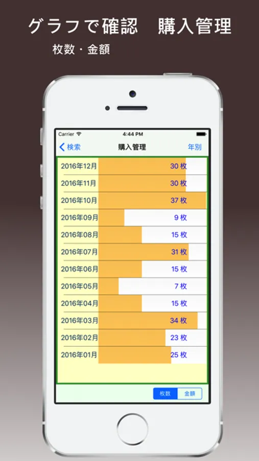 購入した数と金額をグラフで表示します。
