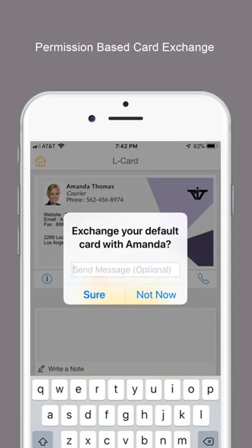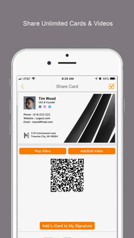 * Use the L-Card QR code scanner, Text, Email or social media to share and receive cards.