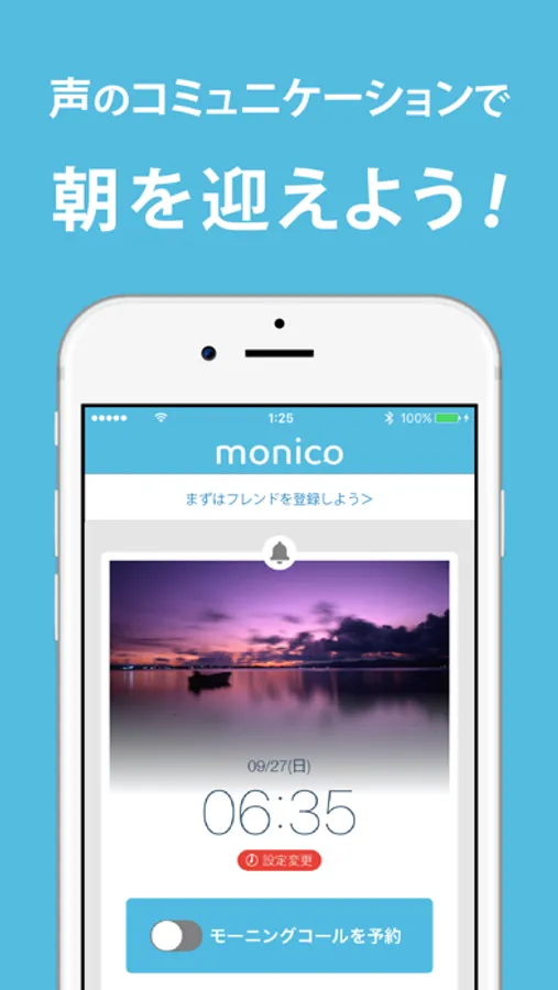 あなたの声を録音すれば、アプリ内のフレンドに向けて、あなたの声「モーニングコール」が届きます。