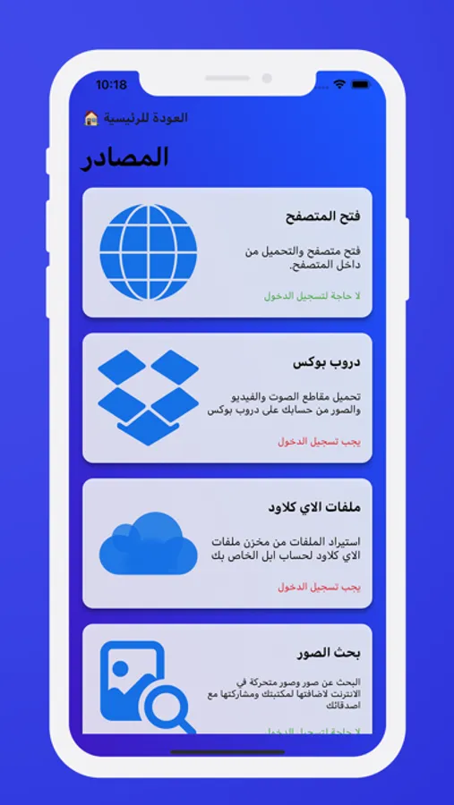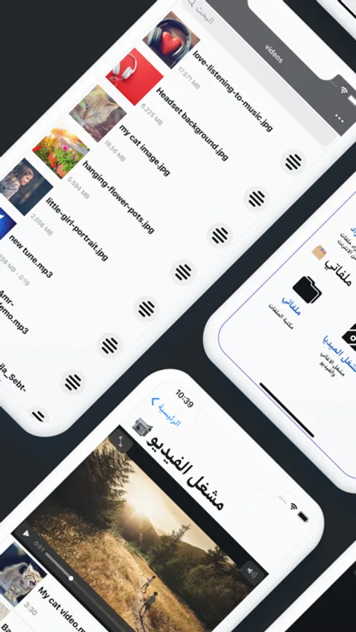 - تحميل ملفات الفيديو والاغاني والصور الى التطبيق من مصادر متعددة