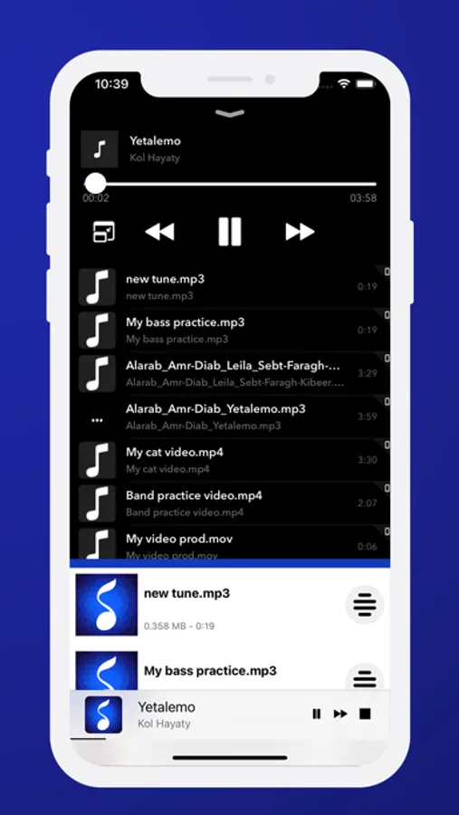 - مكتبة التطبيق لحفظ الملفات وتوفر مميزات عديدة مثل تشغيل ملفات الفيديو كصوت في الخلفية والاستماع الى الاغاني خارج التطبيق