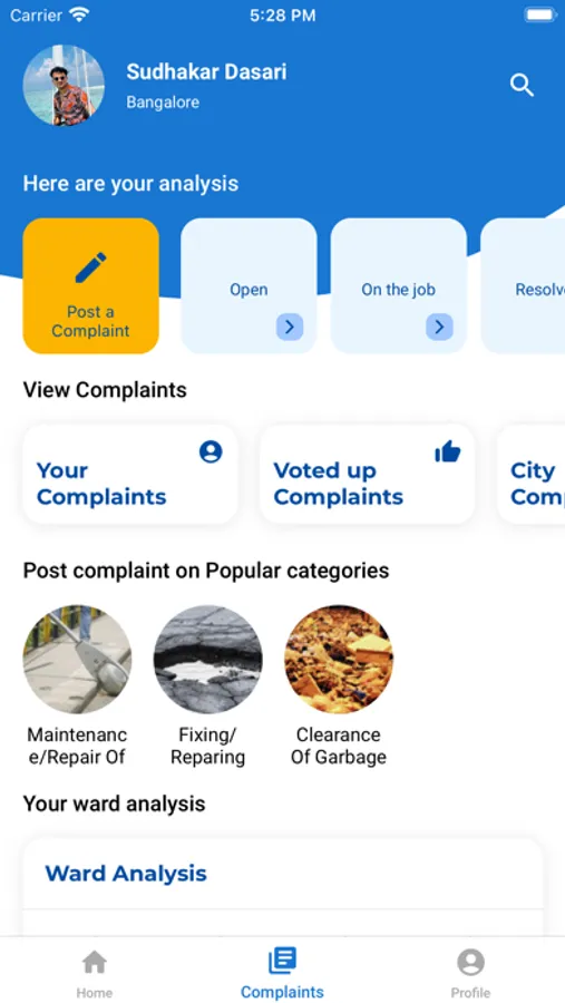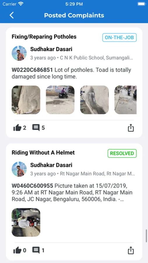 ・ Post a Complaint using the app and get it sent to the correct Civic Agency (BBMP, BWSSB, BESCOM, etc) within minutes.