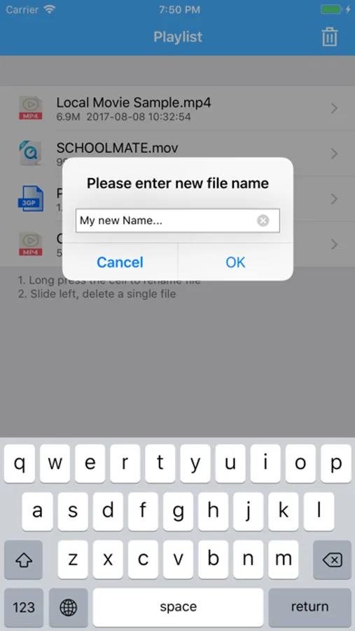 2. Files imported from iTunes can be seen after the file list is refreshed.