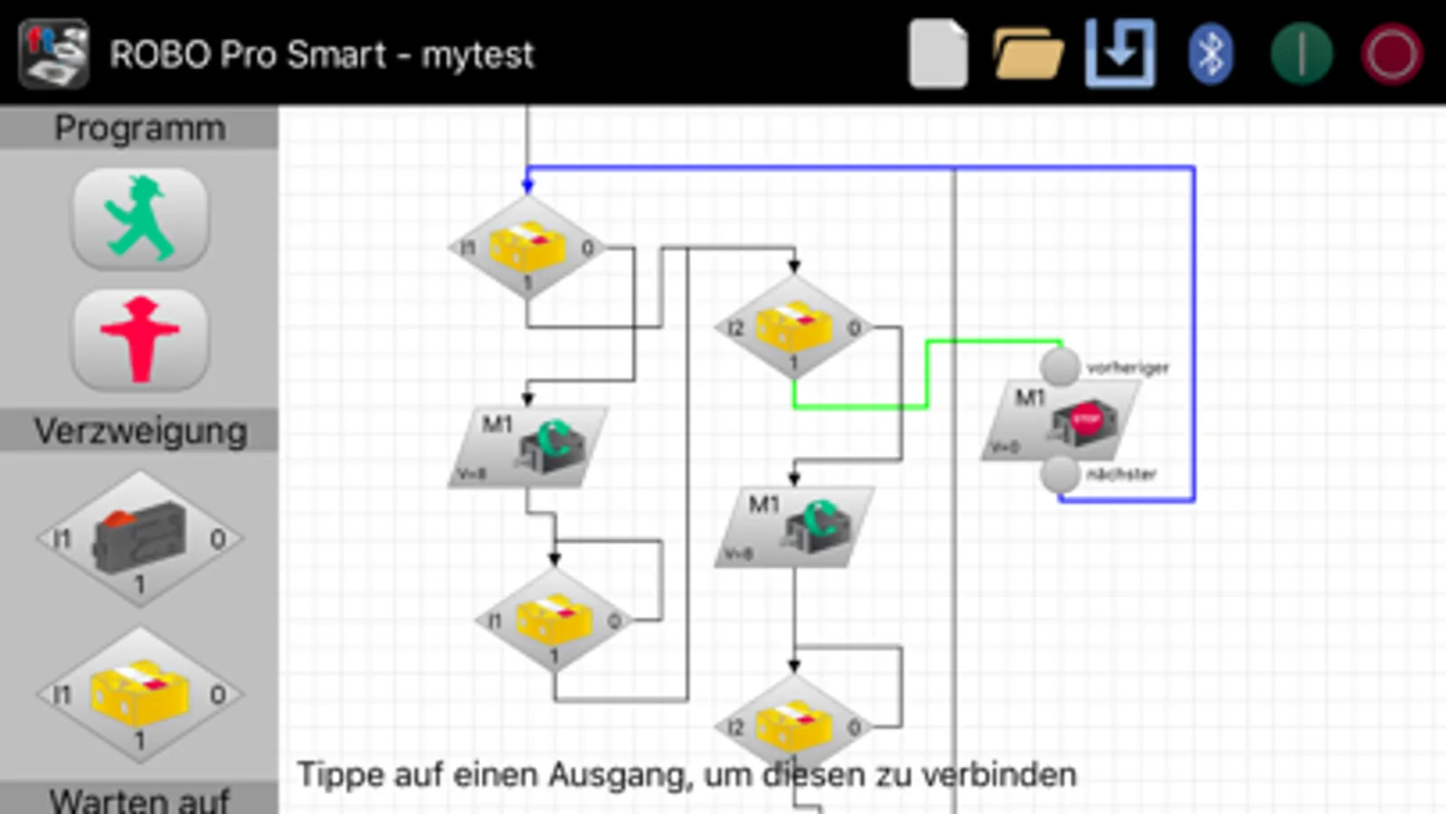 Build your fischertechnik® BT Smart Controller model and bring it to life with the ROBO Pro Smart App. The App’s graphical user interface is intuitive and icon-based. The icons are well known from e.g. the desktop version ROBO Pro and established for many years now. Drag-and-drop the icons, link them and run your code on the model. The use of iPads is preferred, but it works fine with iPhone's smaller displays.