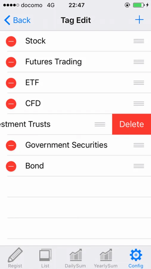 ⑤Tap the red mark on the left end of each tag to delete the tag.