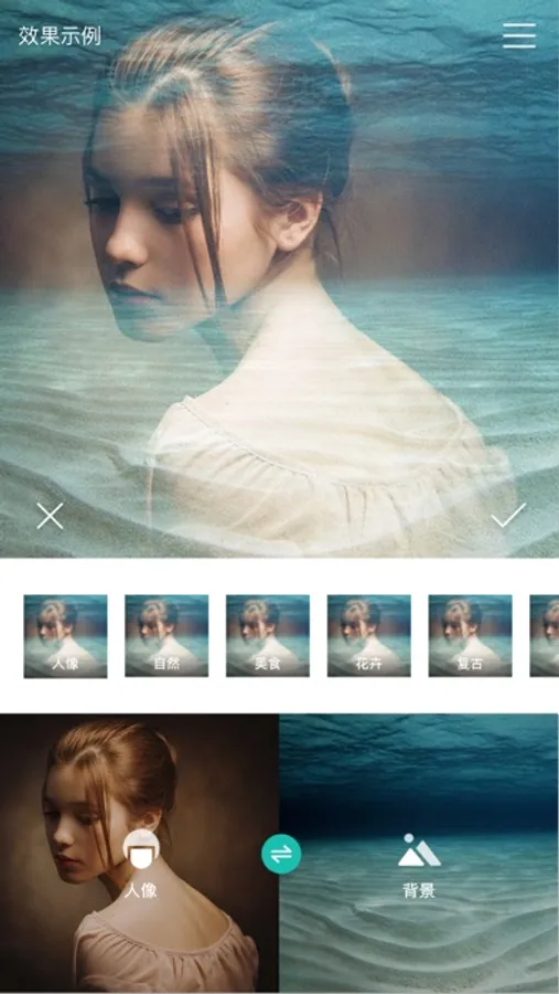 图片合成器是一款超简单的双重曝光图片合成编辑器,能将两张照片融合呈现出双重曝光效果。