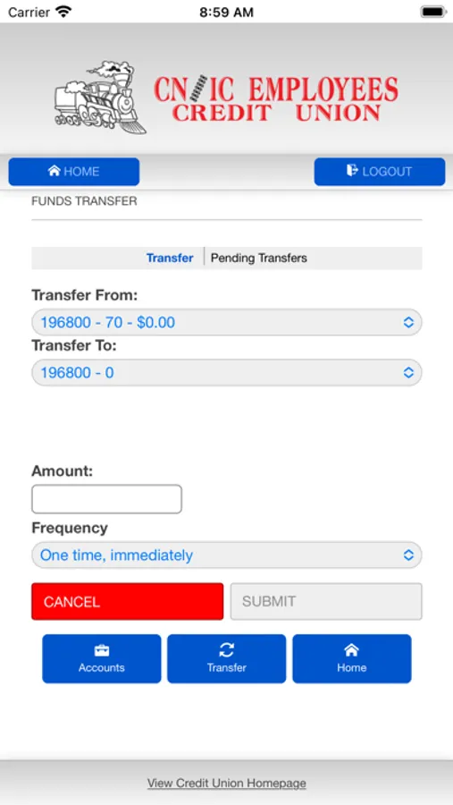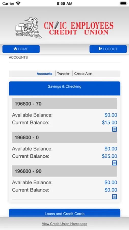 CNIC Employees Credit Union's mobile banking app.