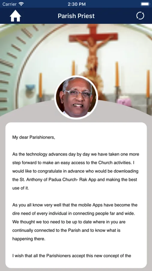 Fr. Thomas Ampattukuzhy. OFM. Cap., Parish Priest of St. Anthony's RAK envisioned the ministry through integrating a latest technologies by enabling the mobility info-case of the church similar to other parishes in UAE. The church members benefit from the following features of this application with dynamic content managed by the parish office and receive the regular updates from the St. Anthony of Padua Roman Catholic Church - Ras Al Khaimah through this application