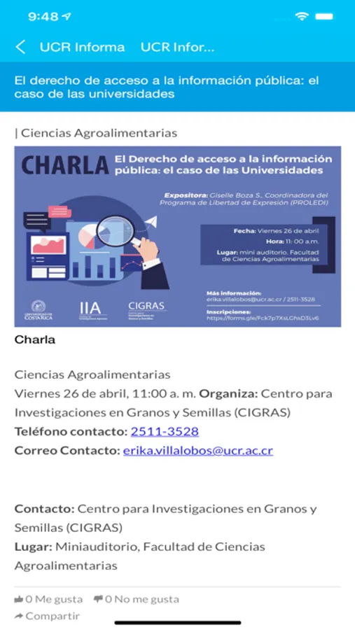 Conozca las actividades y eventos que organiza la Universidad de Costa Rica desde cualquier dispositivo móvil. Para cada actividad o evento encuentre información general, fechas, horarios, enlaces de correo electrónico para contacto de la unidad organizadora o enlaces a los sitios web para obtener más información.