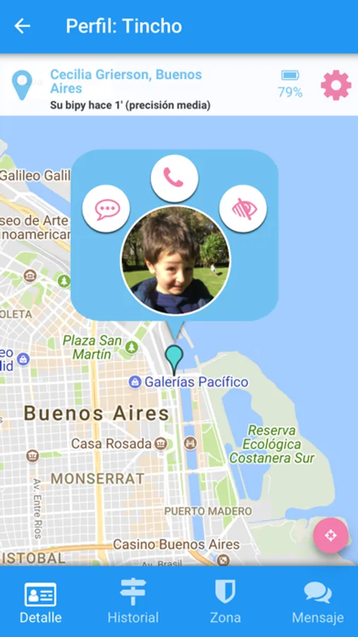 - Conocé la ubicación con la geolocalización en el mapa (Usando GPS, 3G celular y Wifi) y sabrás dónde está el niño.