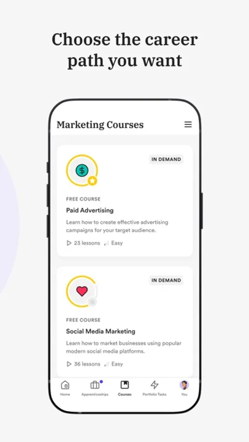 Start with free courses to learn the basics of digital marketing. When you have the basics down, complete small tasks ranging from 1-5 hours for businesses and start building your marketing portfolio. Businesses will give you direct feedback on your marketing tasks to help you get better.