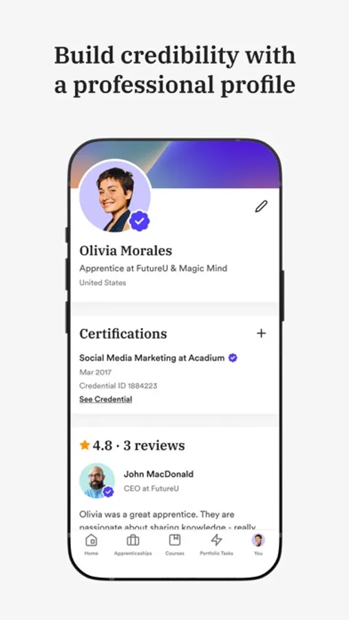 Upon completing an apprenticeship you earn a marketing certification and a letter of reference from your mentor. 55% of apprenticeships lead to a hiring relationship.