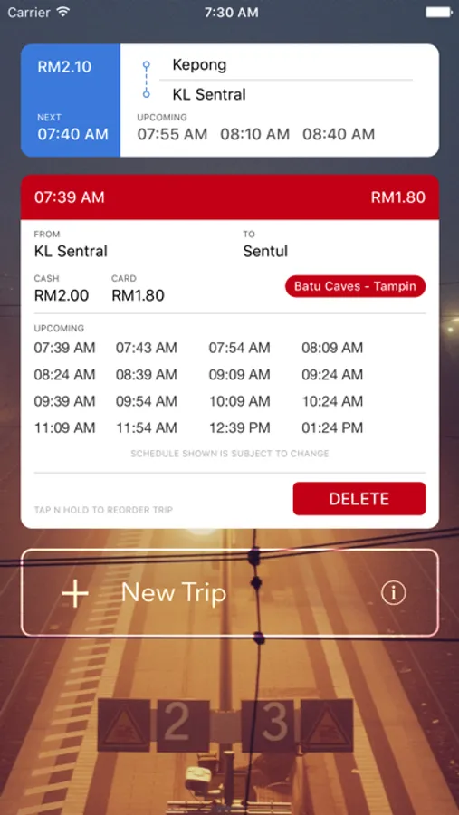 Easily create and manage your trips on Malaysia's public railway system. Get the arrival time and fares of all your daily trips in one screen. Forget the need to ask for schedule, or search for the stations every time.