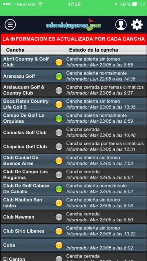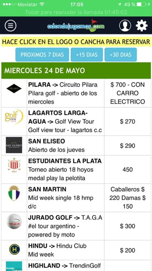 app móvil para usuarios de AdondeJugamos.com donde podrán reservar canchas de golf en Argentina, ver el estado de las canchas en tiempo real, ver las últimas tarjetas presentadas, como llegar a una cancha y muchas facilidades adicionales !!
