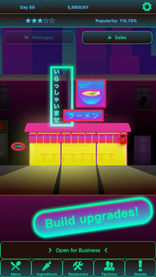 Through a cyber exploit, you have been able to obtain a coveted Ramen-Ya business license. Do not let it go to waste. Prove that organic humans still have a place in this world!