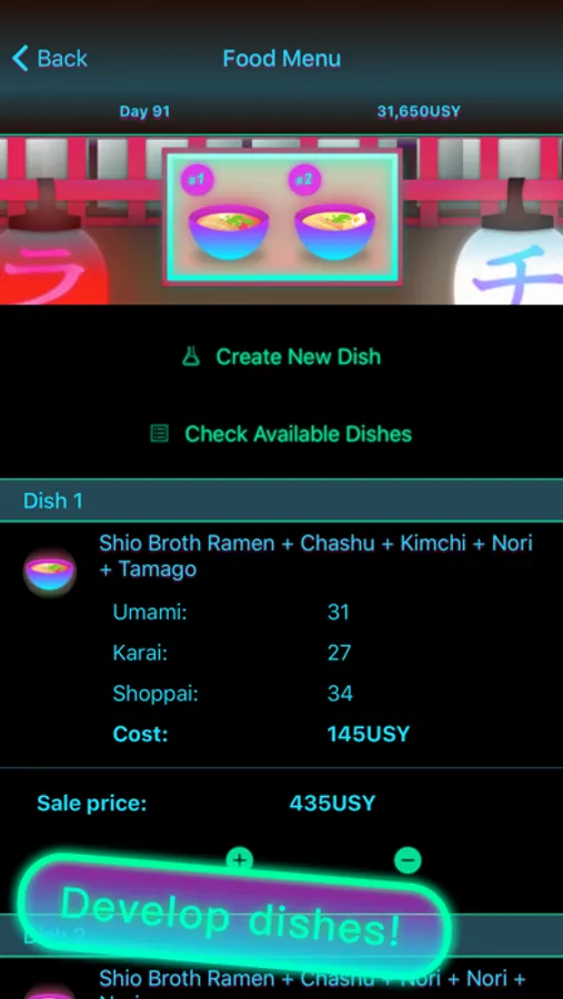 - Develop complex ramen dishes!