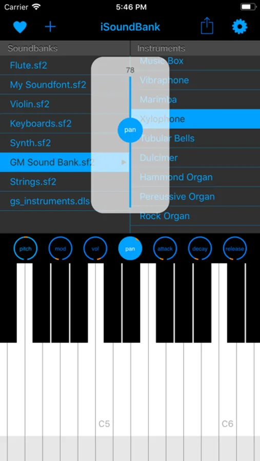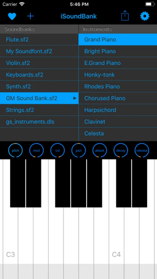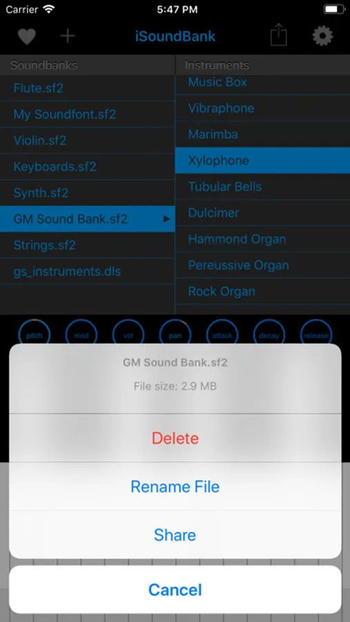 iSoundBank is a sound bank player for SF2 and DLS format files.