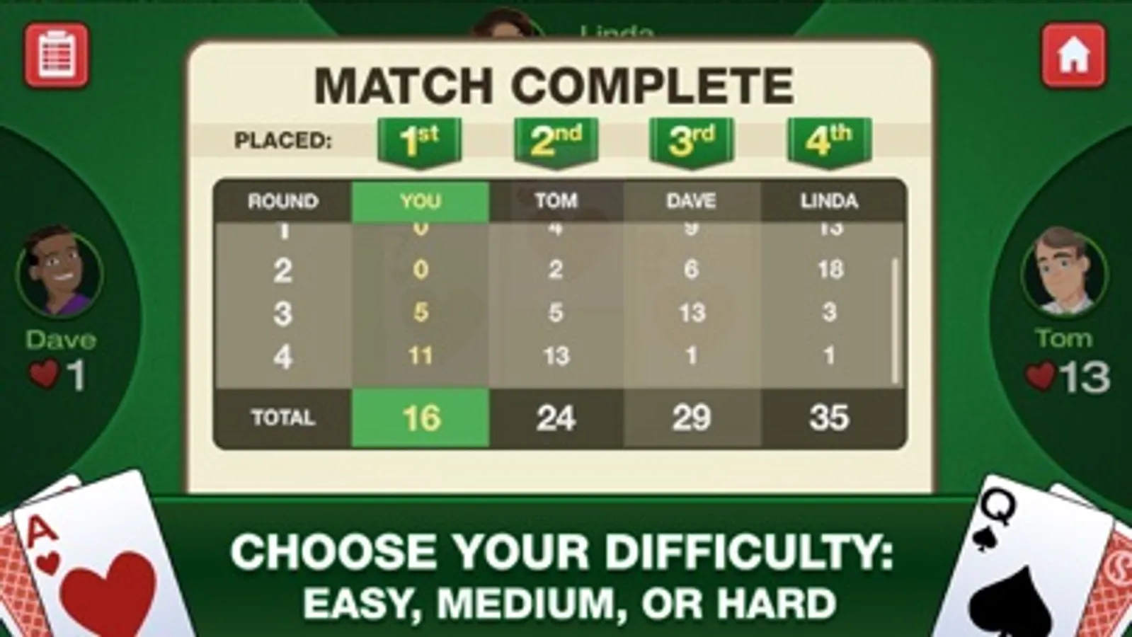 Play the best classic Hearts game designed specifically for iOS! Simple Hearts gives you the fun and relaxing Hearts experience you know and love. Play anywhere, with three intelligent computer opponents that feel so realistic it's like they’re sitting at the table with you. This popular challenge, also known as Rickety Kate, Black Lady, Black Maria, and Black Widow, is a family card game favorite. Download and play Simple Hearts wherever you go.