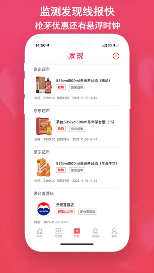【发现频道】免费茅台自营店放货提醒通知,更有京东真快乐天猫等平台上货提醒!