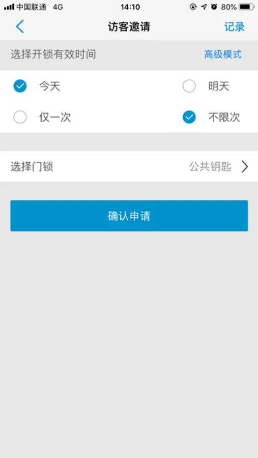 访客邀请:分享访客密码,限时限次开门,便捷出入!