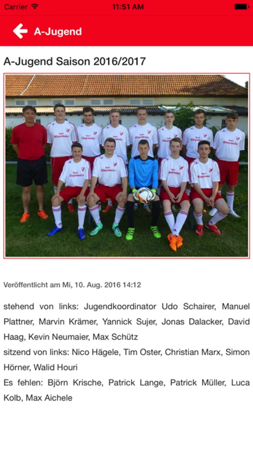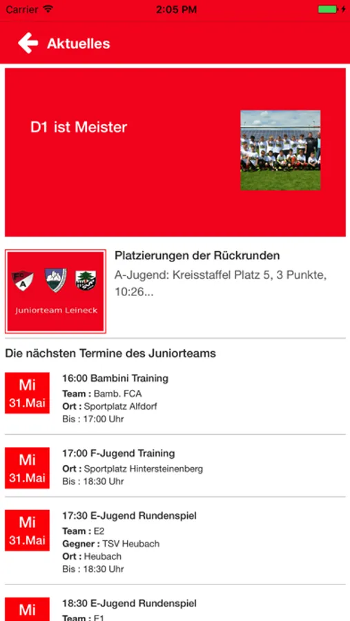 Hier findest Du alle Informationen zum Juniorteam Leineck: Trainingszeiten und -Orte, Trainerteams und Mannschaften, Berichte, Bilder und Videos von Spielen. Sei informiert über alle Termine des Juniorteams, erhalte Push-Nachrichten zu den Terminen und Spielergebnissen sowie zu allen Aktivitäten der Mannschaften. Betrachte die Spieler in den Einzelportraits.